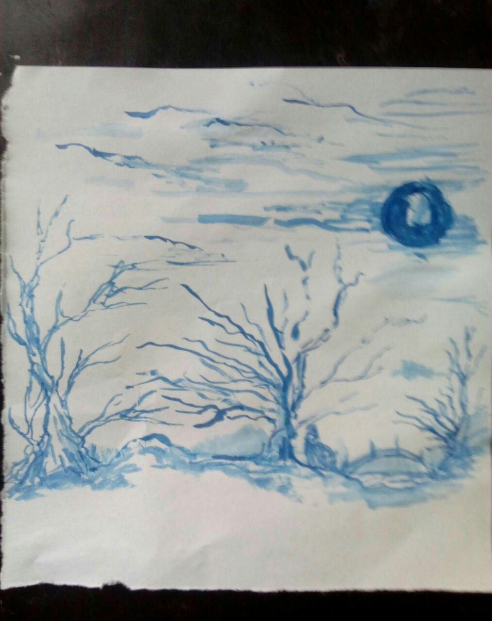 I try sumi-e with a blue ink that I have buy four years ago and I don't have used.